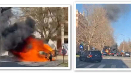 VEST: incendiu la un autoturism în zona unui liceu – focul s-a manifestat generalizat la autoturism