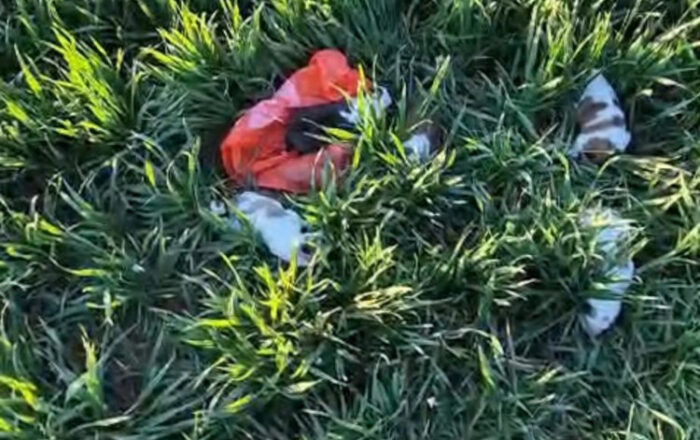 Timiș: amendă de 6.000 de lei pentru un bărbat care a abandonat cinci cățeluși – micuții aruncați într-o plasă