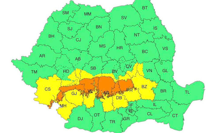 Administrația Națională de Meteorologie a emis un cod portocaliu de precipitații importante cantitativ, ploaie, lapoviță, ninsoare și viscol, valabil de luni, 26 ianuarie, ora 10:00, până marți, 27 ianuarie, ora 20:00, pentru zonele de deal și de munte din județele Mehedinți, Gorj, Vâlcea, Argeș, Dâmbovița și Prahova.