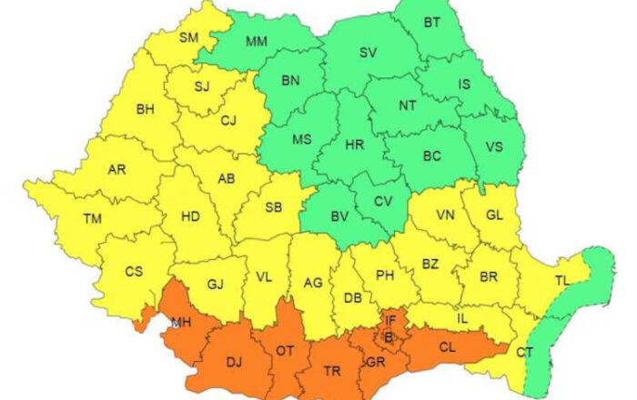 Alături de Municipiul București, județele marcate cu Cod portocaliu sunt: Mehedinți, Dolj, Olt, Teleorman, Giurgiu, Ilfov și Călărași.