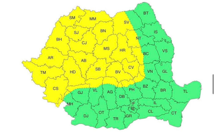 Județul Timiș se află sub avertizare Cod galben emisă de Administrația Națională de Meteorologie, pe fondul unui episod de vreme severă care afectează o mare parte a țării.
