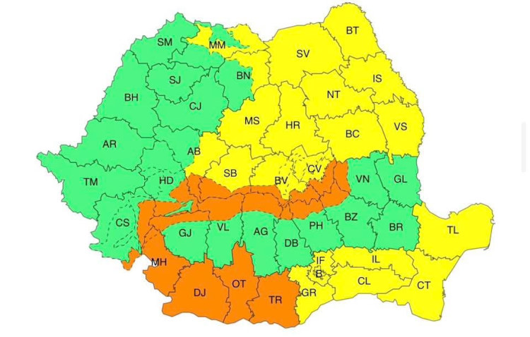 De asemenea, sunt în vigoare avertizări Cod portocaliu de vânt puternic și viscol pentru mai multe județe din sudul țării și pentru zonele montane înalte, unde rafalele pot atinge 100–120 km/h, iar vizibilitatea poate scădea sub 50 de metri.