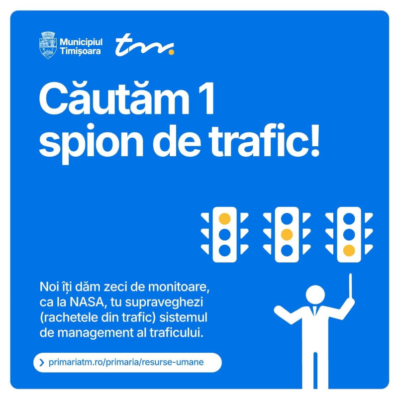 Primăria Timișoara caută “spion pentru trafic“ și “magician pe două roți“.