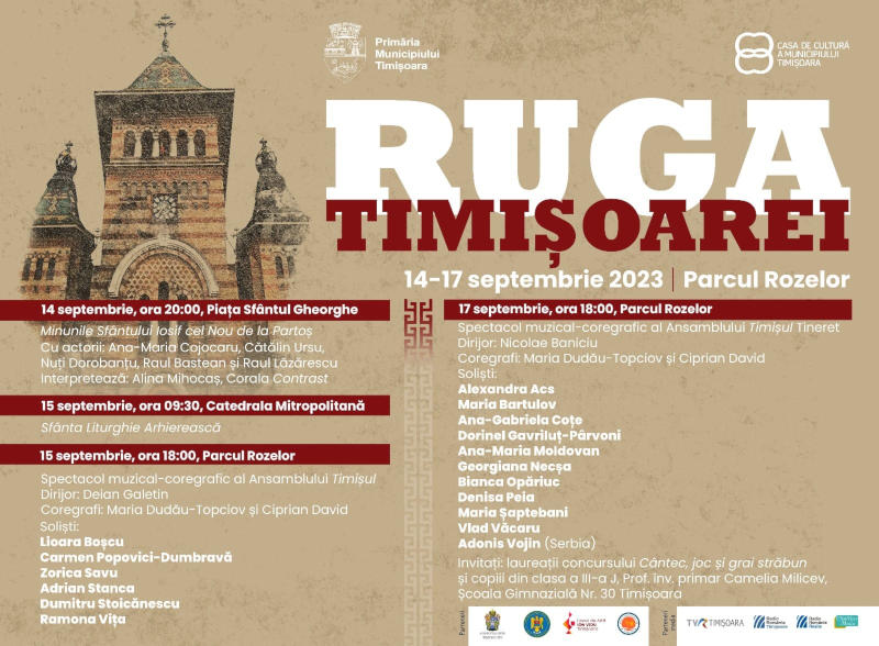 Astfel, pe 15 septembrie, după Sfânta Liturghie Arhierească de la Catedrala Mitropolitană, sărbătoarea Sfântului Iosif cel Nou de la Partoș sărbătoarea continuă în Parcul Rozelor, de la ora 18:00, cu Ansamblul „Timișul”, însoțit de soliștii Lioara Boscu, Carmen Popovici-Dumbravă, Zorica Savu, Adrian Stanca, Dumitru Stoicănescu și Ramona Vița.