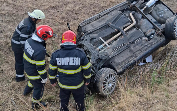 Sâmbătă seara, în jurul orei 22:00, un accident rutier a avut loc pe raza comunei Saravale, unde un autoturism s-a răsturnat, având la bord trei persoane.