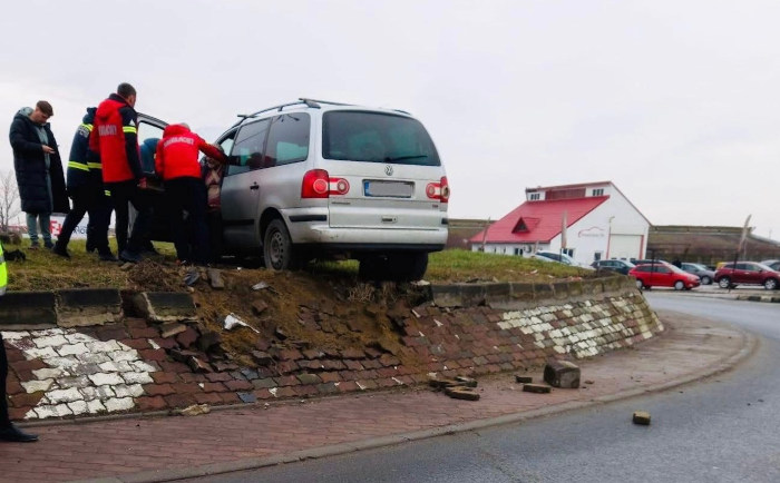 Un șofer de 71 de ani s-a urcat pe sensul giratoriu.