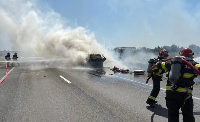 Timiș: nou incident rutier pe Centura Lugoj – o mașină a luat foc în mers – doi adulți și un minor s-au autoevacuat – cauza probabilă este o scurgere de carburant din rezervor
