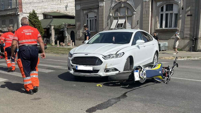 “În urma impactului, motociclistul a fost rănit și transportat la spital“, a transmis Poliția Timiș.