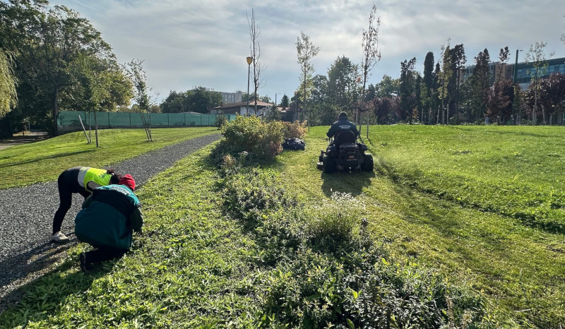 - Igienizat coșuri de gunoi, măturat alei și degajat teren în parcurile și zonele centrale aflate în îngrijire.