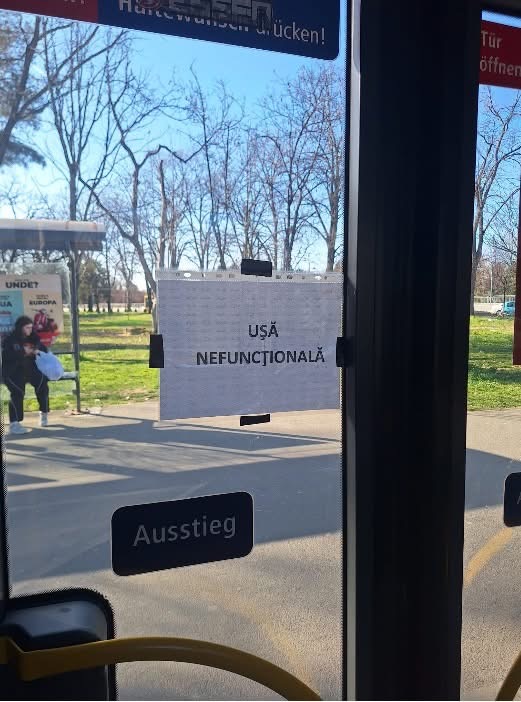 În postare se menționează și o situație recentă legată de o ușă care nu s-ar fi închis. Potrivit lui Șeracin, aceasta ar fi fost legată cu sârmă ruginită, fiind pus un afiș cu mesajul „Ușă nefuncțională”. În timpul unei curse, spune acesta, călătorii ar fi observat și fire electrice ieșite din tavanul desprins al autobuzului.