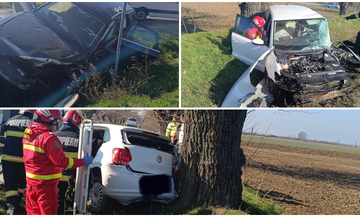 Accident rutier în județul Arad în care au fost implicate două autoturisme, la ieșire din localitatea Călugăreni spre Felnac.