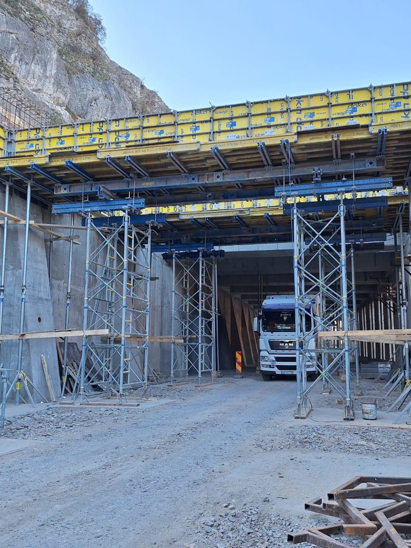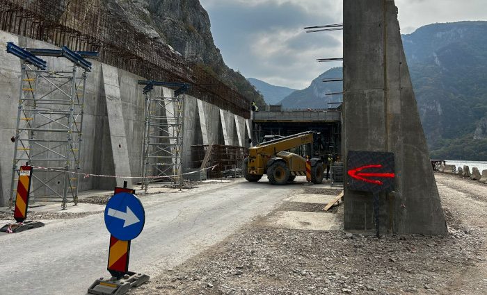 „Din cele 110 grinzi care trebuie montate la polata care se construiește pentru a proteja drumul de pe Clisura Dunării de posibilele căderi de roci de pe versant au fost montate 46, iar săptămâna viitoare se vor mai ridica încă 22 de elemente structurale de beton. Continuă lucrările de pe DN 57, în zona Berzasca, și la realizarea traveelor, spații care ajută la stabilitatea construcției, între pilele polatei„, a precizat DRDP Timișoara.