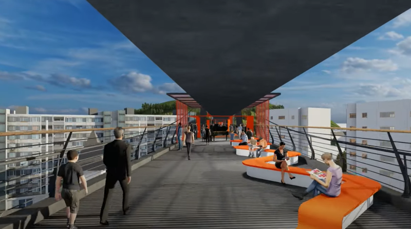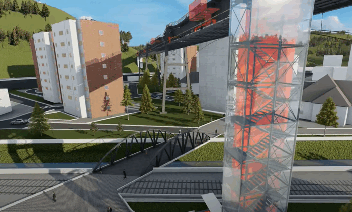 Accesul va fi facil pentru toți, prin ambele capete și un lift panoramic dedicat inclusiv persoanelor cu mobilitate redusă, copiilor și vârstnicilor. La bază va fi amenajat un centru de vizitare modern, cu expoziții și evenimente ce vor valorifica patrimoniul industrial al orașului.