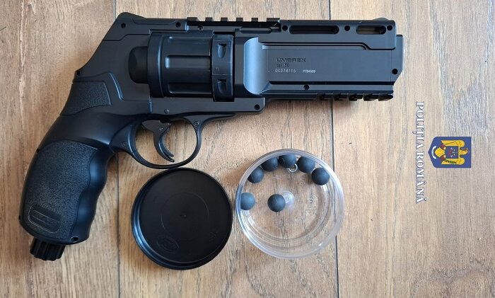 “În cadrul activităților desfășurate în cursul zilei de ieri, 28 mai, polițiștii din cadrul Serviciului Arme, Explozivi și Substanțe Periculoase Hunedoara au identificat un tânăr în vârstă de 22 de ani, din orașul Simeria, care deținea ilegal o armă neletală. În urma verificărilor efectuate la domiciliul acestuia, polițiștii au descoperit o armă scurtă, neletală, cu bile de cauciuc, de tip revolver, o butelie cu aer comprimat și 7 proiectile din cauciuc de același calibru – muniție aferentă armei respective. Tânărul nu deținea permis legal pentru a avea în posesie astfel de arme sau muniție“, a transmis Poliția Hunedoara.