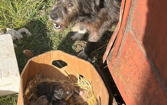 VEST: un bărbat amendat cu 12.000 de lei după ce a abandonat pe stradă o cățelușă și patru pui – animăluțele lăsate într-o cutie de carton