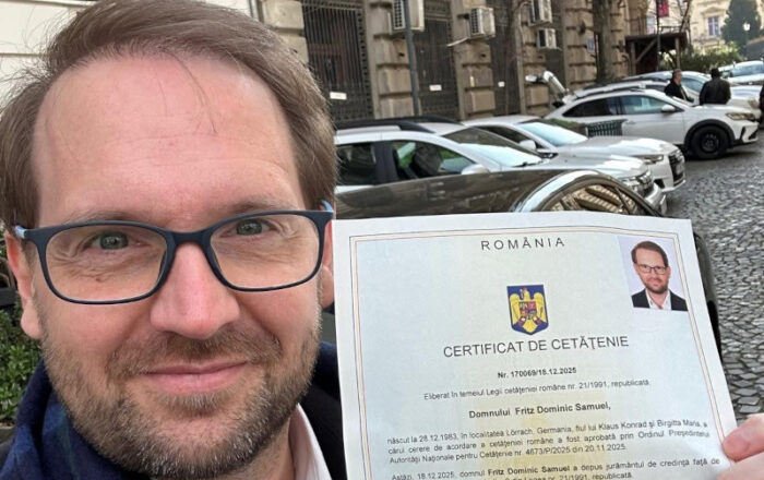 ”România, gata, sunt unul de-ai tăi! Am trecut de proba de interviu şi am primit aviz pozitiv pentru obţinerea cetăţeniei române. Mulţumesc, România, că m-ai primit în casa ta acum 22 ani! M-ai făcut adult, m-ai făcut european, m-ai făcut mai tenace, mai călduros, mai inventiv. Iar acum m-ai făcut român cu acte în regulă”, anunţa la jumătatea lunii noiembrie Dominic Fritz.