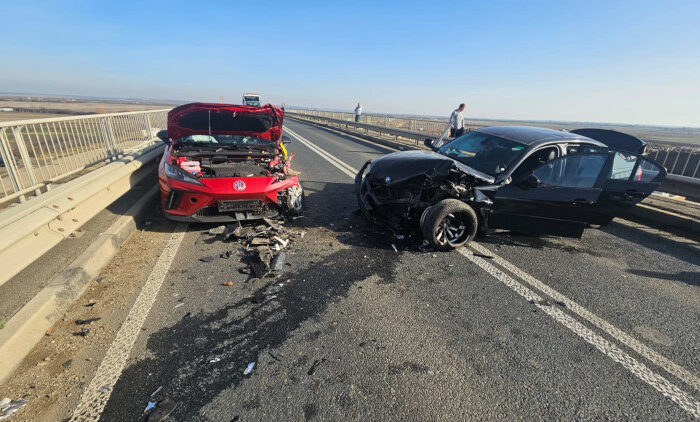 VIDEO. Timiș: accident între o ambulanță privată și o mașină pe pod la Remetea Mare – trei persoane au ajuns la spital – ambulanța transporta doi pacienți la dializă – UPDATE: o femeie a murit