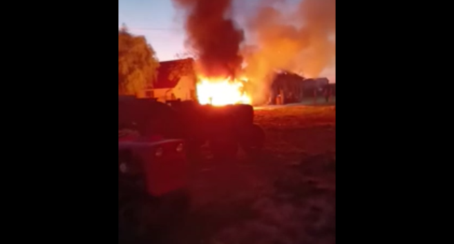VIDEO. Timiș: panică printre locuitorii unei comune – microbuzul cu pâine a luat foc în mijlocul caselor și a ars ca o torță – scânteile au ajuns pe casele oamenilor