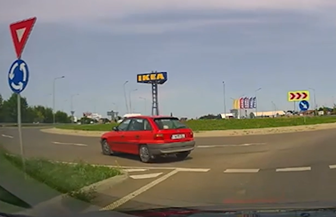 Din imagini se poate observa cum șoferița, aflată la volanul unui autoturism de culoare închisă, pătrunde greșit în sensul giratoriu, circulând împotriva direcției legale și punând în pericol traficul din zonă.