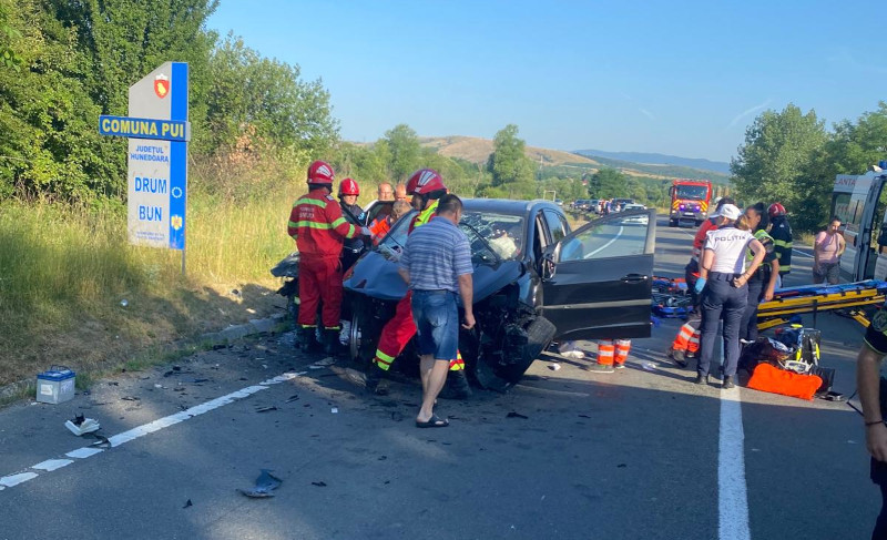 “Pentru gestionarea situației de urgență, pompierii Detașamentelor Petroșani și Hunedoara au acționat de urgență cu 2 autospeciale de intervenție și 2 ambulanțe SMURD, iar la locul accidentului s-au direcționat 2 echipaje ale Serviciului de Ambulanță Județean și un elicopter SMURD. Evenimentul rutier s-a produs în urma impactului dintre 2 autoturisme, iar în accident au fost implicate 3 persoane: două aflate într-unul dintre autovehicule, iar cea de-a treia, în celălalt autoturism. La sosirea echipajelor de intervenție victimele erau conștiente, dar prezentau multiple traumatisme. Li s-au acordat îngrijiri medicale de urgență, ulterior fiind transportate la spital, astfel: bărbatul în vârstă de aproximativ 56 de ani, conducătorul auto al unuia dintre autovehiculele implicate, a suferit un traumatism cranian, a fost preluat si transportat de elicopterul SMURD la UPU Petroșani, iar celelalte 2 victime, o femeie si bărbat, care prezentau multiple traumatisme, au fost preluate de către ambulanțele SMURD și SAJ, fiind transportate la UPU Hunedoara“, a transmis ISU Hunedoara.
