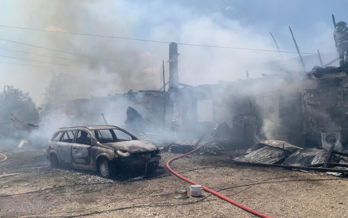 ”La sosirea echipajelor incendiul se manifesta violent la construcţia cu rol de locuinţe sociale, practic un fost grajd transformat şi la un autoturism. Incendiul s-a propagat şi la încăperea cu rol de cabinet veterinar, încăpere aflată în aceiaşi clădire şi la un autoturism parchat in curte. Intervenţia a fost foarte dificilă din cauza faptului că incendiul a afectat şi cablurile de joasă tensiune de pe stâlpi”, a transmis, joi seară, ISU Arad.