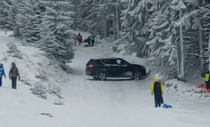 Un moment de panică a fost surprins în stațiunea Parâng, unde un autoturism de tip jeep a ajuns pe marginea unei pârtii și a alunecat necontrolat pe zăpadă, spre consternarea turiștilor aflați în zonă.