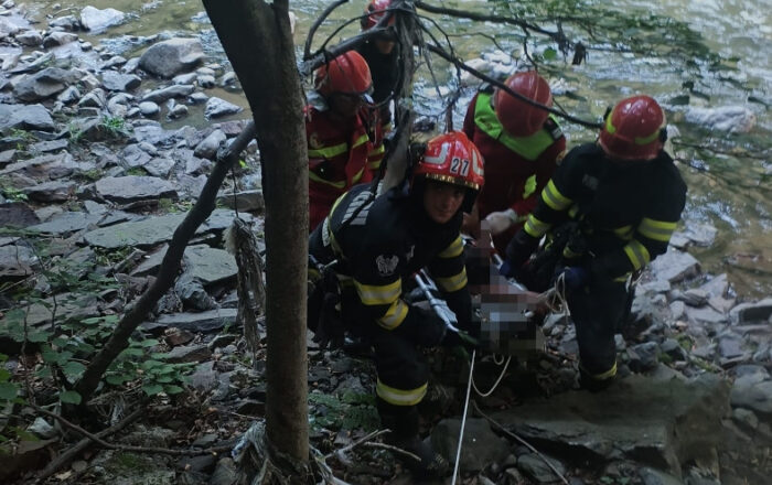 ‘La locul evenimentului, echipajele operative au găsit un bărbat și o femeie, care au căzut în prăpastie, aproximativ 30-40 de metri, până pe malul Jiului. Femeia prezenta răni ușoare și atac de panică. Bărbatul însă a suferit multiple traumatisme, fiind imobilizat imediat de către salvatori și extras în siguranță, cu ajutorul unei tărgi. Intervenția a presupus un mare efort din partea colegilor noștri, din cauza zonei greu accesibile, abrupte și a distanței până la ambulanțe. Ulterior, ambele victime au fost transportate la spitalul din Petroșani pentru investigații suplimentare și tratament de specialitate’, au anunțat reprezentanții ISU Hunedoara.