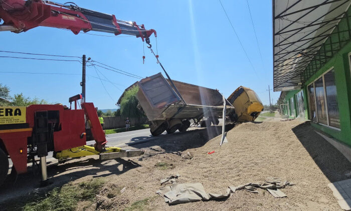 “Joi, 14.08.2025, în jurul orei 12.25, în localitatea Brebu s-a produs un accident rutier soldat cu pagube materiale. Din primele verificări, polițiștii au stabilit că, în timp ce un bărbat de 29 ani conducea un ansamblu de vehicule, compus din cap tractor și semiremorcă, pe DN 58, la intersecția cu DJ 587, ar fi pierdut controlul asupra direcției de mers și s-ar fi răsturnat în afara părții carosabile, provocând pagube materiale la partea de acces a unui magazin aflat în imediata apropiere. În urma accidentului nu au fost persoane rănite. Conducătorul auto a fost testat cu privire la consumul de alcool, rezultatul fiind negativ“, a transmis Poliția Caraș-Severin.